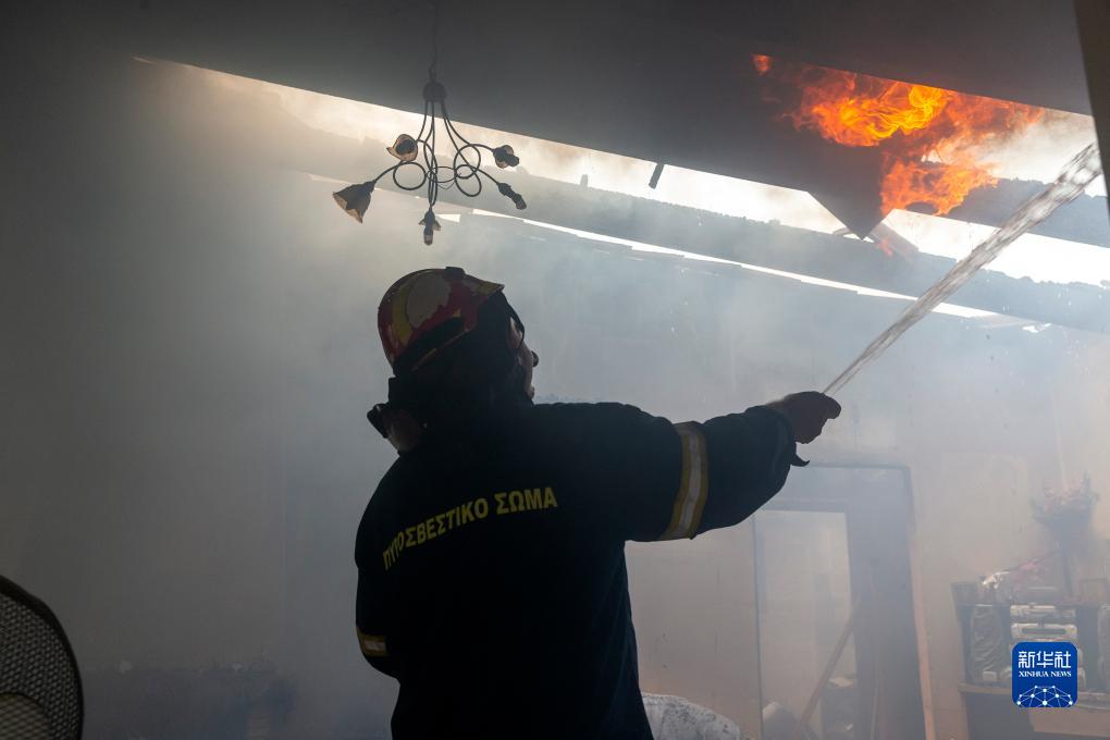 8月22日,消防員在希臘首都雅典附近的查西亞村滅火。