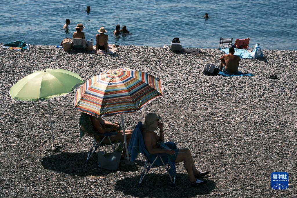 8月22日,人們在法國南部城市尼斯海邊消暑。