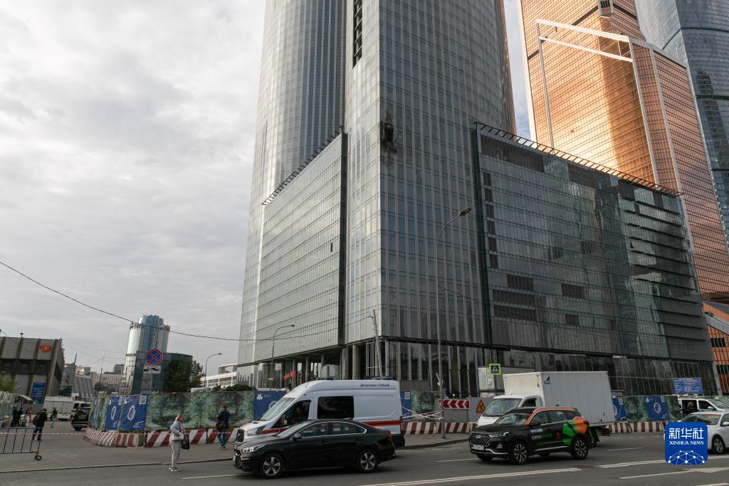 這是8月23日在俄羅斯首都莫斯科拍攝的受損建筑。