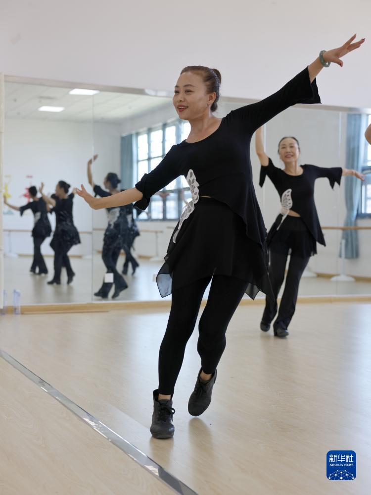 8月23日,在河北省滄州市青縣市民文化活動(dòng)中心舞蹈教室,舞蹈愛(ài)好者在老師的帶領(lǐng)下練習舞蹈。