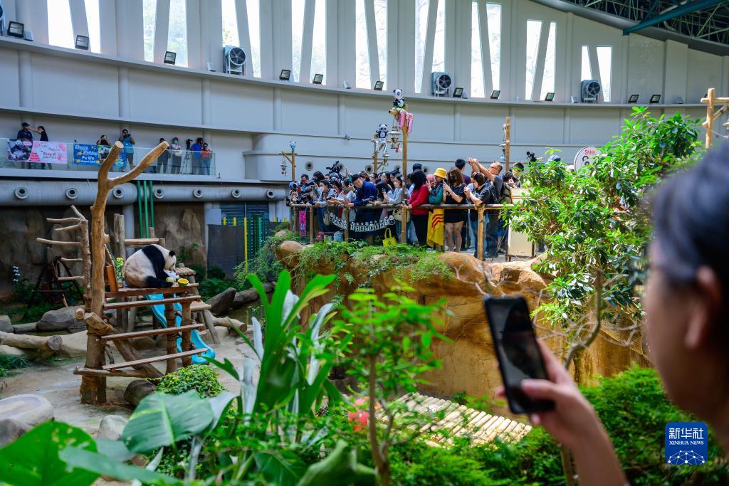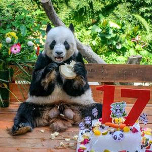 在馬來(lái)西亞國家動(dòng)物園大熊貓保護中心內,中國旅馬大熊貓夫婦“興興”和“靚靚”23日迎來(lái)了17歲生日。