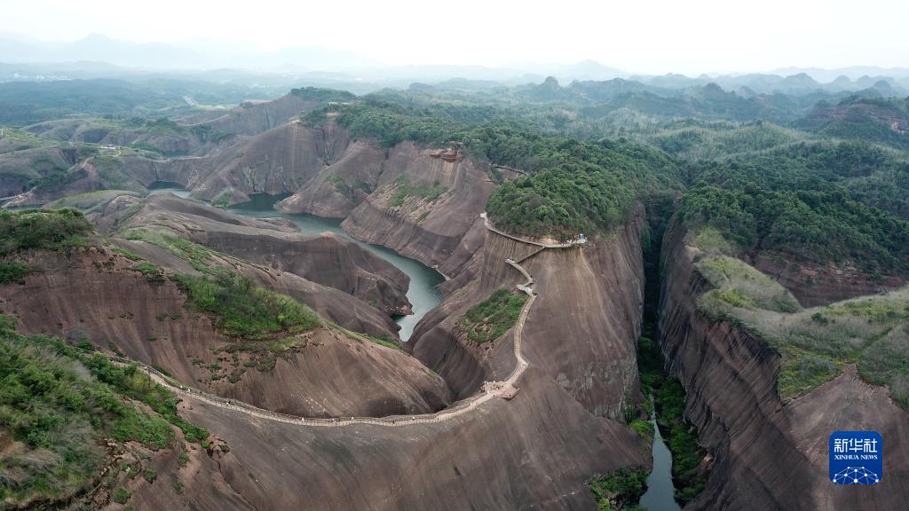 今年暑期,位于湖南省郴州市蘇仙區的高椅嶺景區迎來(lái)大量游客。高椅嶺有著(zhù)罕見(jiàn)的丹霞地貌景觀(guān),山頭渾圓四壁陡峭,碧水環(huán)繞風(fēng)景絢麗。