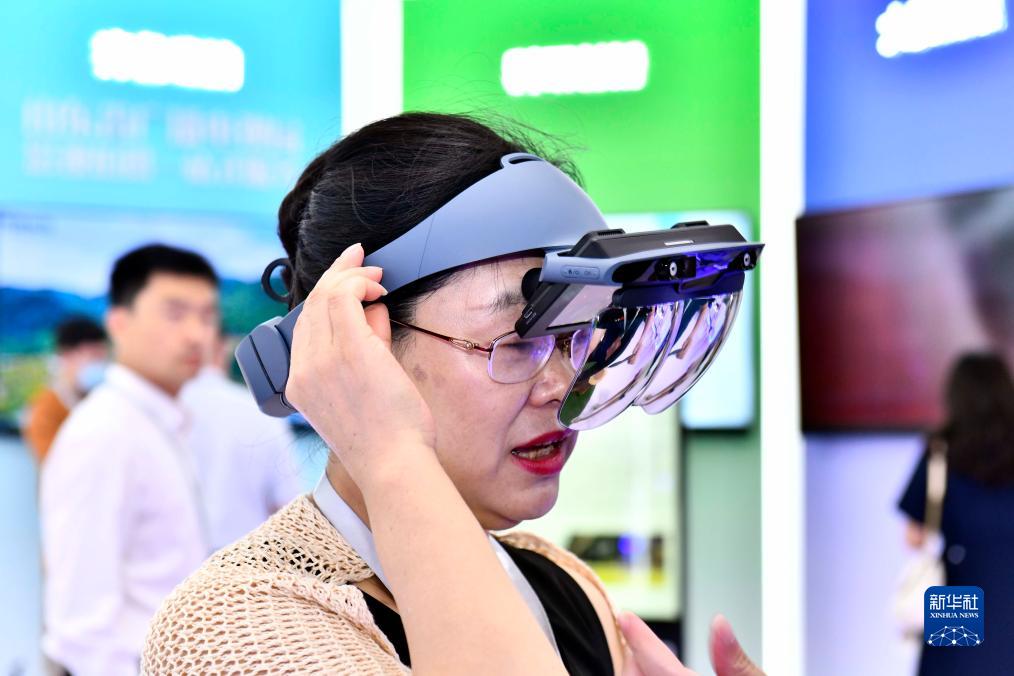 8月24日,在青島召開(kāi)的2023年中國網(wǎng)絡(luò )視聽(tīng)精品創(chuàng )作峰會(huì )上,與會(huì )嘉賓在智能視聽(tīng)沉浸式體驗展區體驗新技術(shù)新應用。