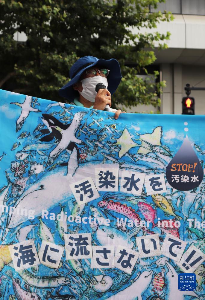 8月24日,日本民眾手持“不要讓污染水流入大?!钡臉苏Z(yǔ)在東京電力公司總部前集會(huì ),抗議日本政府和東電公司無(wú)視民意啟動(dòng)核污染水排海。