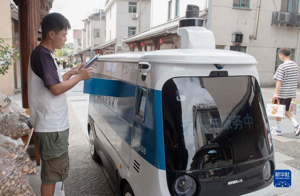 當日,浙江省磐安縣尖山鎮烏石村啟用“客貨郵”無(wú)人快遞車(chē),長(cháng)方形無(wú)人快遞車(chē)穿梭在山村街巷,派發(fā)、收取快遞件。無(wú)人快遞車(chē)由中郵驛站系統設置,村民從微信小程序上預約收貨、發(fā)貨。