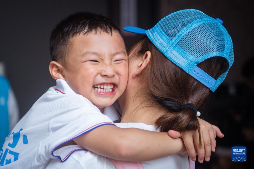 8月24日,留守兒童在活動(dòng)現場(chǎng)與母親擁抱。新華社記者 伍志尊 攝