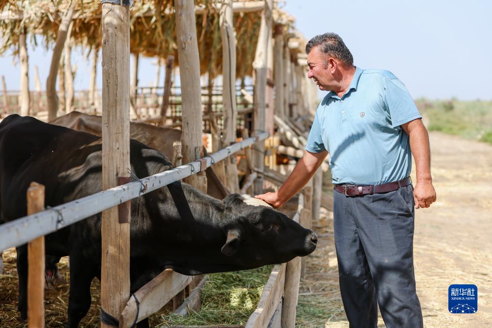8月17日,爾肯·熱衣木在牛棚查看剛生產(chǎn)不久的母?;謴颓闆r。目前,只有剛生產(chǎn)不久的牛羊在家中,方便喂養小羊羔和小牛犢,其他的都在草場(chǎng)。
