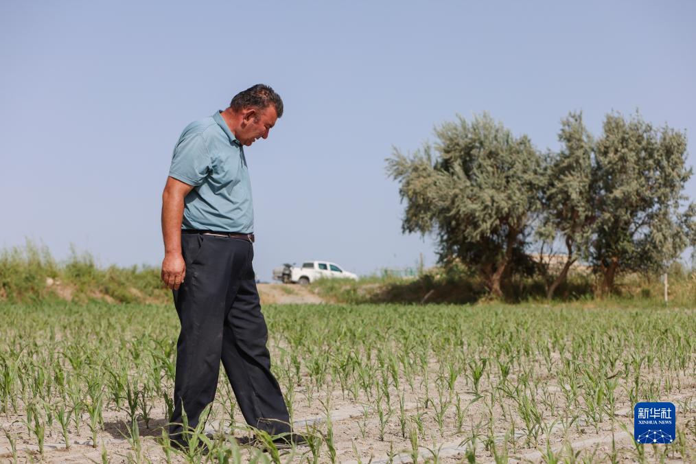 8月17日,爾肯·熱衣木查看第二茬青貯玉米生長(cháng)情況,第一茬青貯玉米7月份已經(jīng)收割。
