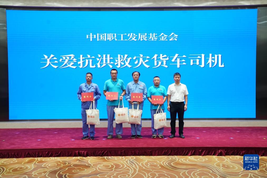 8月25日,在2023年“暖途·貨車(chē)司機職業(yè)發(fā)展與保障行動(dòng)”啟動(dòng)儀式上,在京津冀抗洪搶險中作出重要貢獻的貨車(chē)司機代表接受慰問(wèn)。