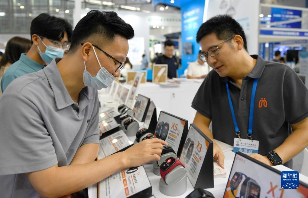 8月25日,市民在廣州博覽會(huì )上參觀(guān)選購智能手表。
