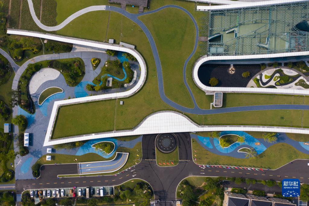 8月24日,空中俯瞰杭州富陽(yáng)水上運動(dòng)中心,屋頂被綠植覆蓋(無(wú)人機照片)。新華社記者 徐昱 攝