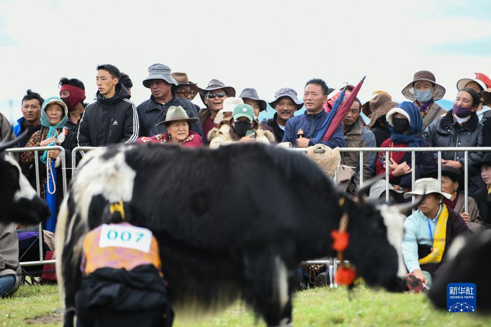 8月25日,在四川省阿壩藏族羌族自治州紅原縣雅克音樂(lè )牧場(chǎng),當地群眾和游客在觀(guān)看擠牦牛奶比賽。