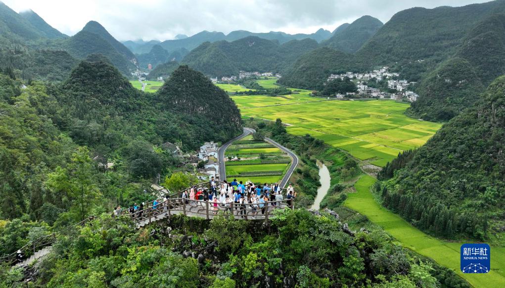 8月25日,游客在貴州省黔西南布依族苗族自治州興義市萬(wàn)峰林景區觀(guān)光游覽(無(wú)人機照片)。新華社發(fā)(袁福洪攝)