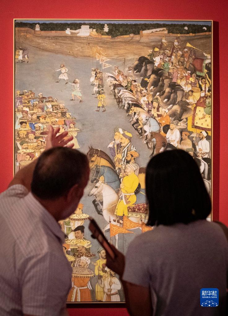 8月24日,在耶路撒冷舉行的古代阿拉伯世界飲食文化展上,人們觀(guān)看描繪婚宴場(chǎng)景的繪畫(huà)。
