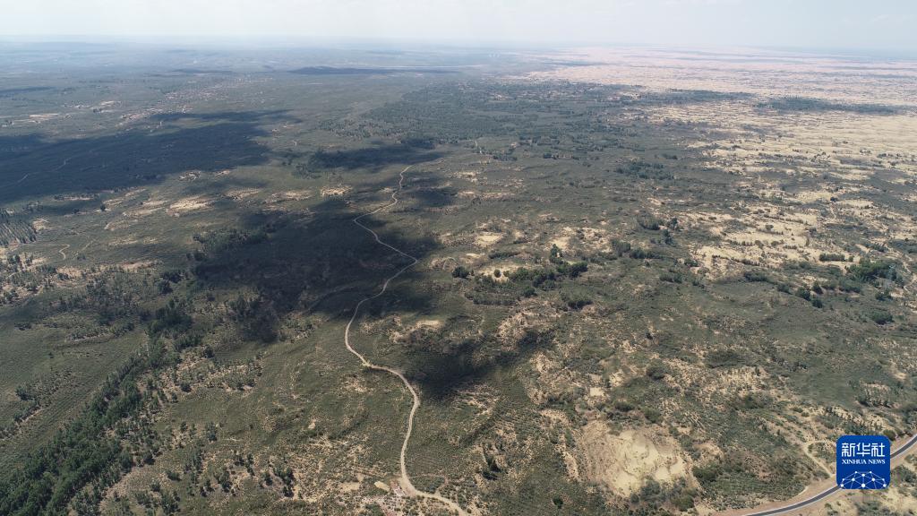這是8月24日拍攝的庫布其沙漠腹地銀肯沙項目區(無(wú)人機照片)。