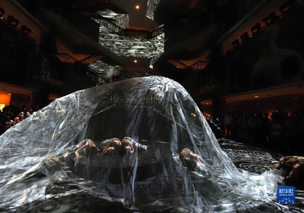 8月25日晚,演員在上博“研色·良渚之夜”綜合藝術(shù)秀上表演現代舞。新華社記者 任瓏 攝