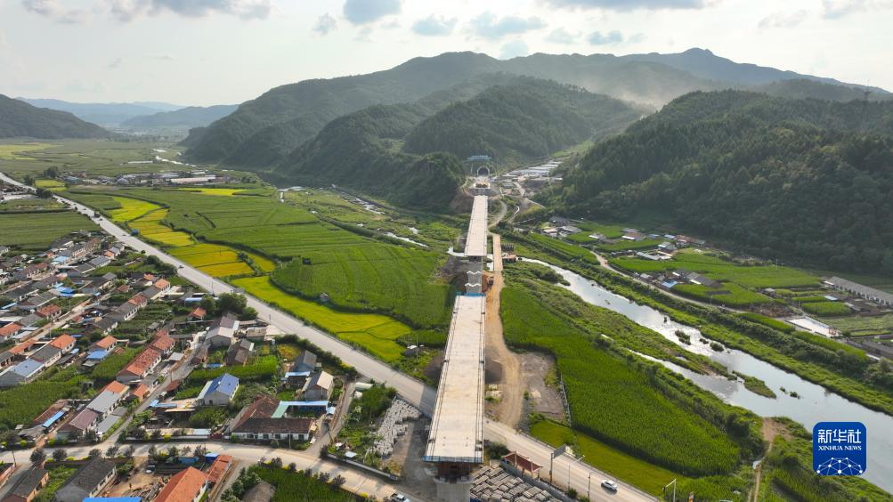 8月25日拍攝的沈白高鐵新賓隧道出口(無(wú)人機照片)。