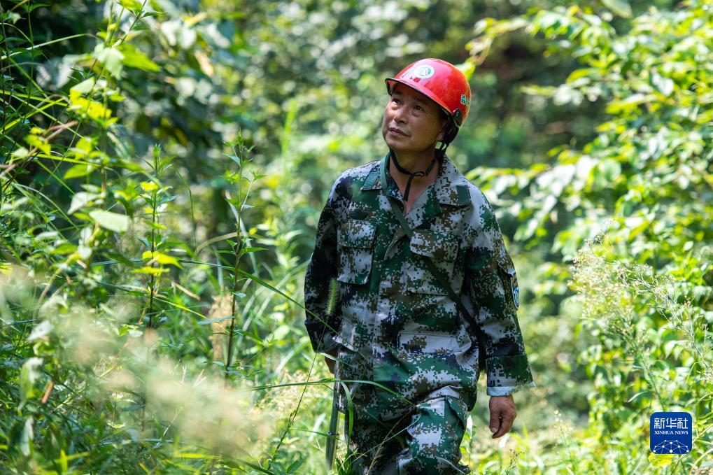 8月24日,在瀏陽(yáng)市金剛鎮平灣村,黃蔚谷在巡山。