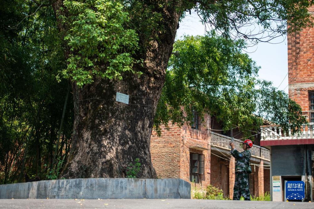 8月24日,在瀏陽(yáng)市金剛鎮丹桂村,黃蔚谷記錄古樹(shù)生長(cháng)情況。