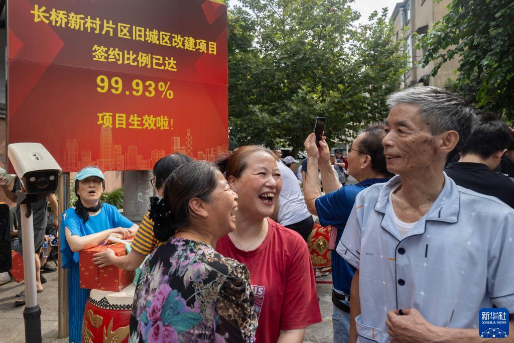 8月26日,居民在長(cháng)橋新村片區舊城區改建項目居民集中搬場(chǎng)儀式上交流。