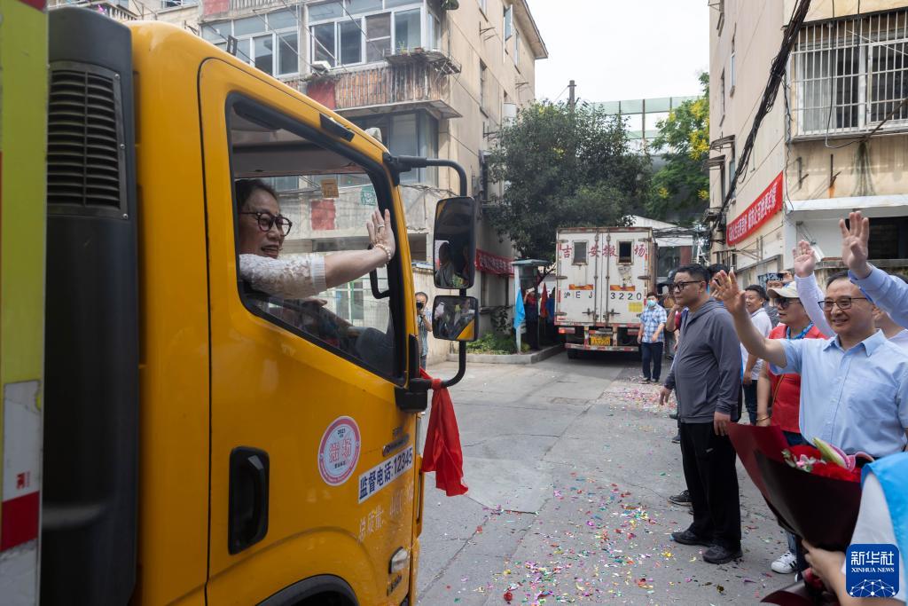 8月26日,居民簇擁在路邊為長(cháng)橋新村片區舊城區改建項目搬場(chǎng)居民送行。