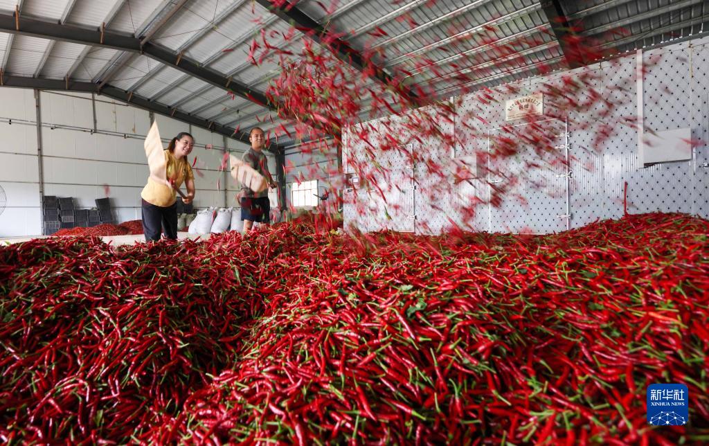 8月26日,貴州省黔東南苗族侗族自治州岑鞏縣水尾鎮大樹(shù)林村村民在整理剛采收的辣椒。