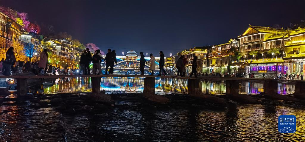 湖南省湘西土家族苗族自治州鳳凰古城持續推進(jìn)旅游環(huán)境提質(zhì)升級,規范旅游市場(chǎng),完善旅游服務(wù)設施。每到夜晚,鳳凰古城沱江兩岸燈光璀璨,美景如畫(huà),吸引眾多游客前來(lái)感受“夜鳳凰”的獨特魅力。