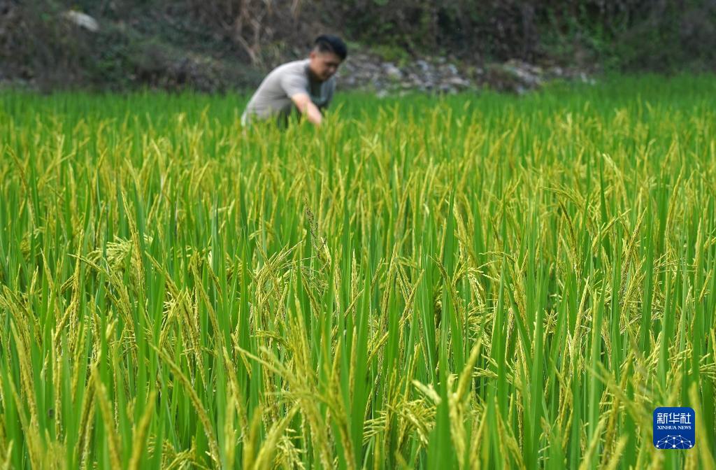 包希孟查看農業(yè)體驗區里水稻生長(cháng)情況(8月24日攝)。