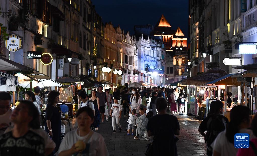 游客在??隍T樓老街參觀(guān)游玩(8月21日攝)。