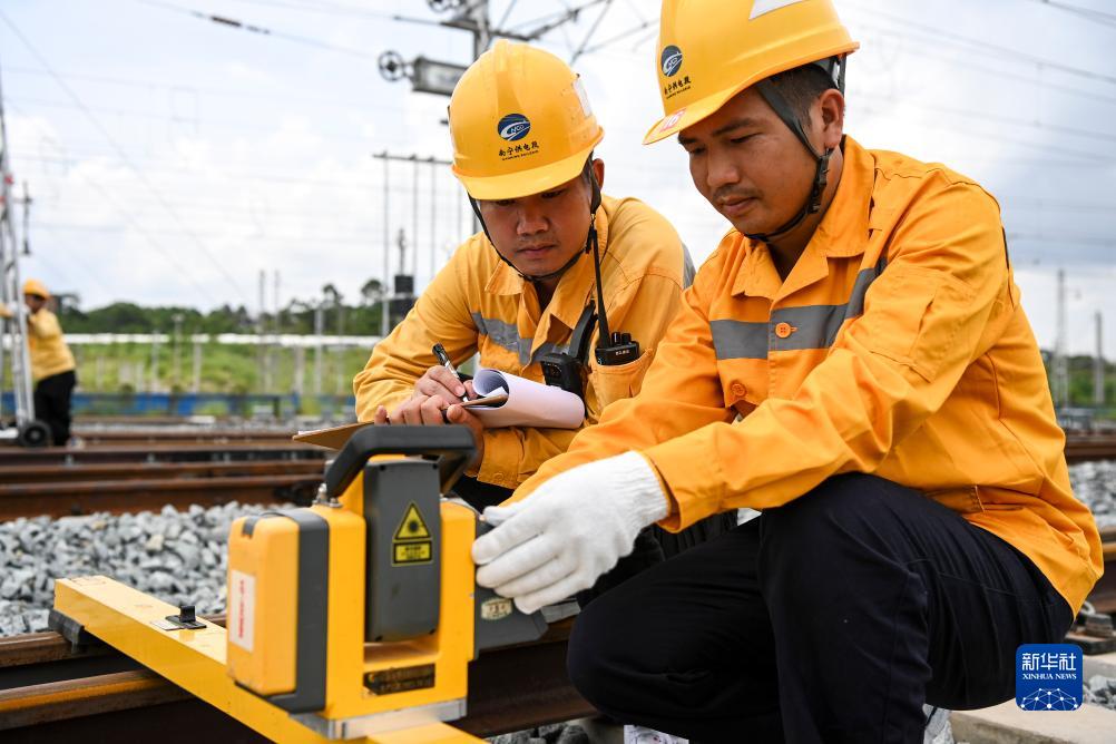 8月27日,中國鐵路南寧局集團有限公司南寧供電段的接觸網(wǎng)工在操作激光接觸網(wǎng)檢測儀。