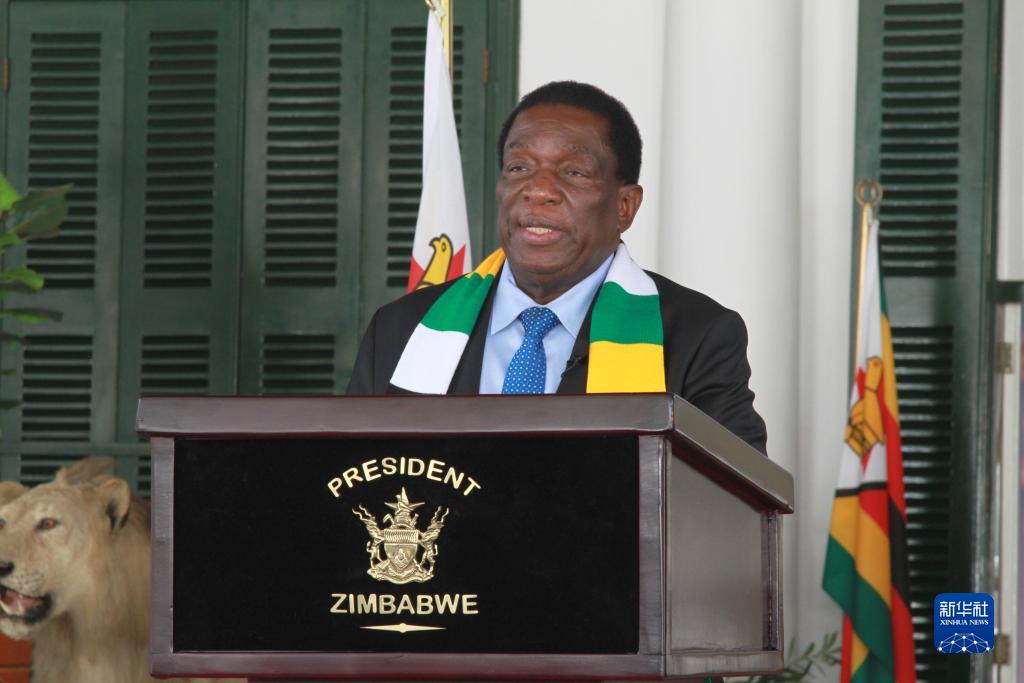 8月27日,在津巴布韋哈拉雷,姆南加古瓦被宣布獲得連任后向媒體發(fā)表講話(huà)。