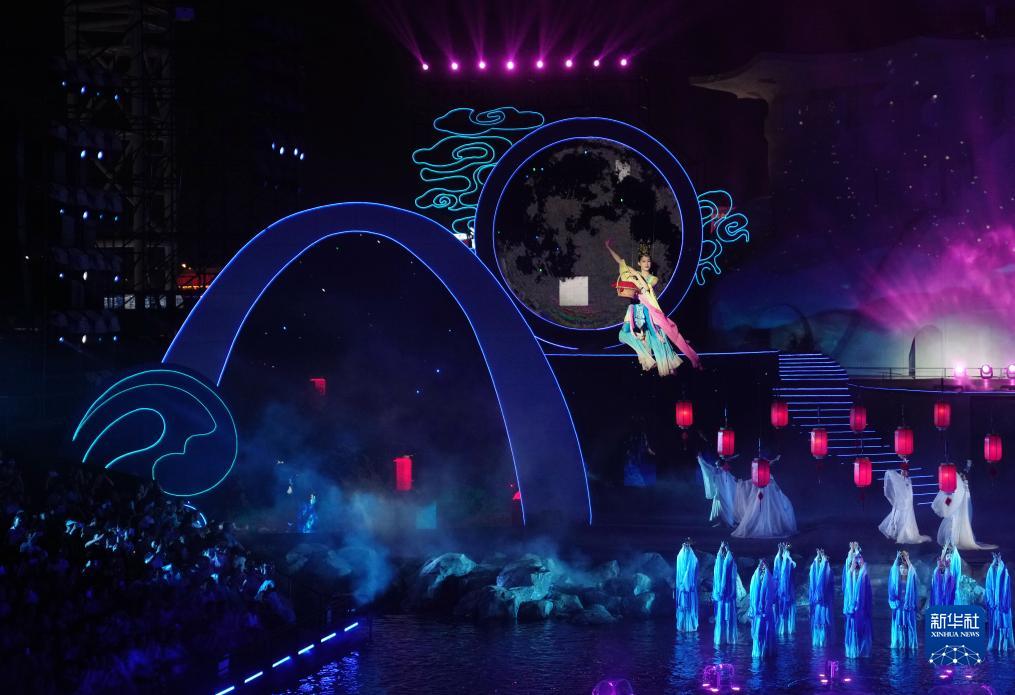 8月26日,演員在北戴河碧螺塔酒吧公園為游客表演大型實(shí)景秀《浪淘沙·北戴河》。