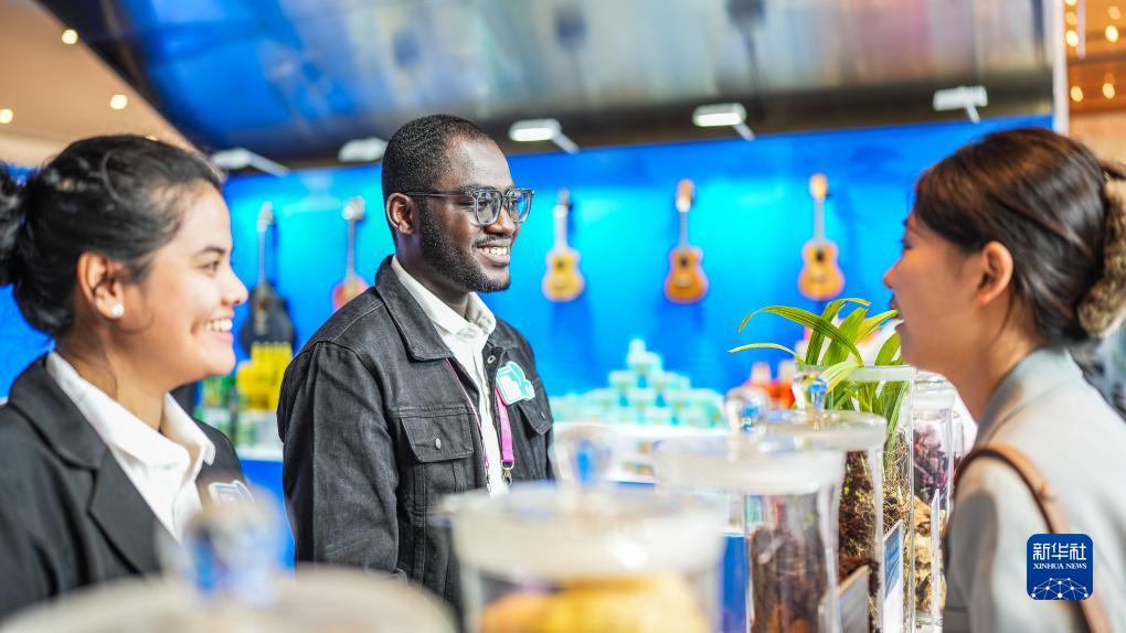8月29日,國際留學(xué)生在交流周活動(dòng)上和參會(huì )人員交流。