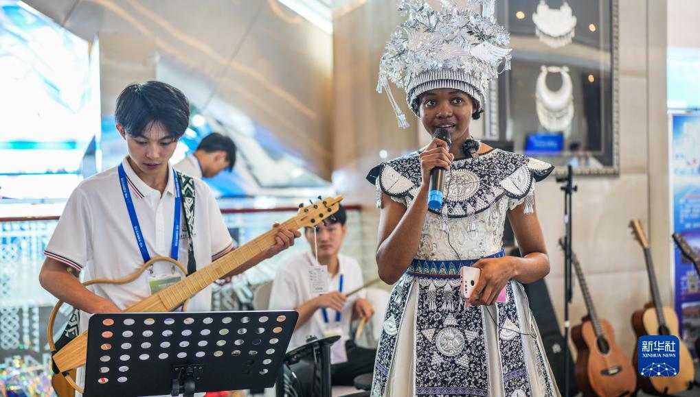 8月29日,國際留學(xué)生在交流周活動(dòng)上演唱歌曲《山水貴客》。