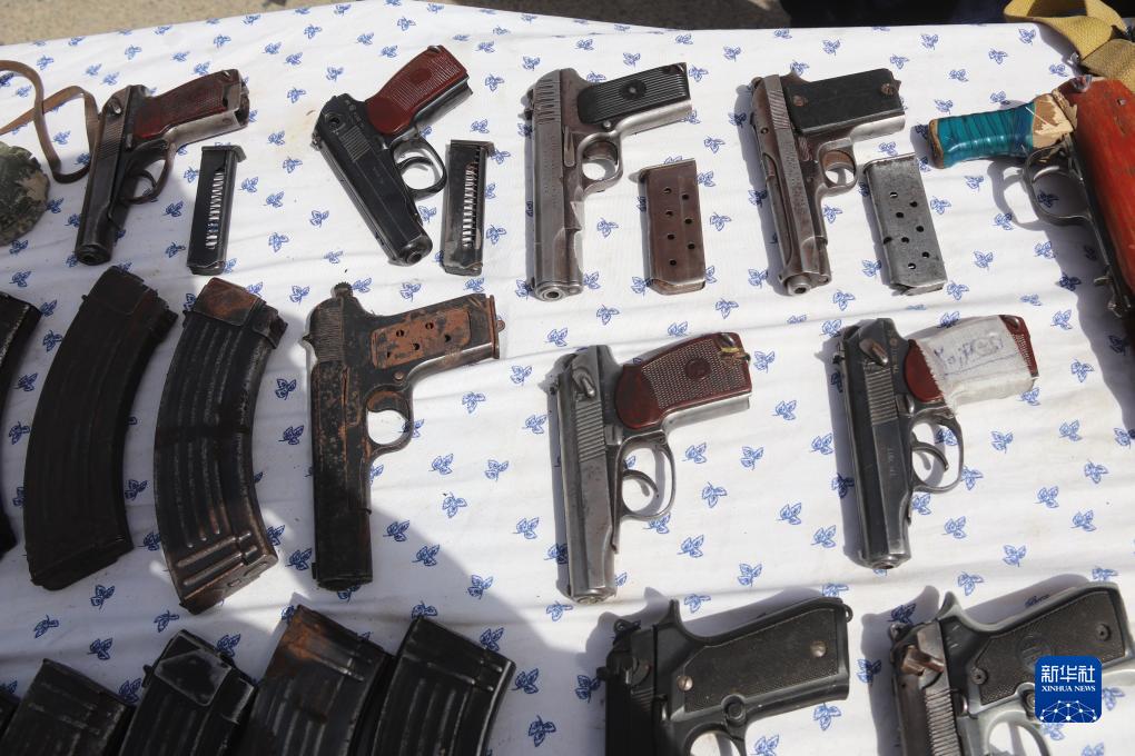 這是8月29日在阿富汗巴爾赫省拍攝的被阿富汗安全部隊收繳的武器。