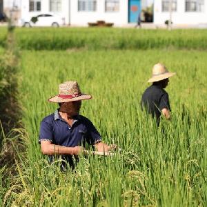 8月29日,河北省遷安市大崔莊鎮樓子山村農民在水稻田內除草。