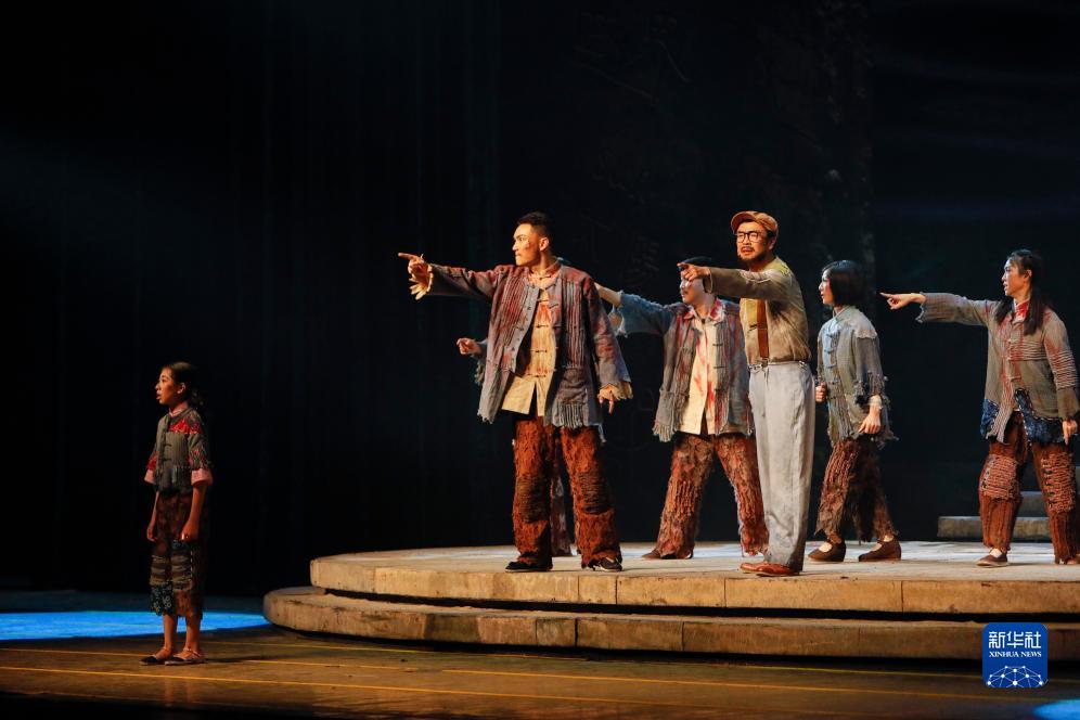 8月29日晚,演員在蘭州音樂(lè )廳表演新版紅色兒童劇《大豆謠》。
