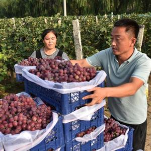 8月30日,邢臺市威縣戚霍寨村一家庭農場(chǎng)果農在采摘葡萄。