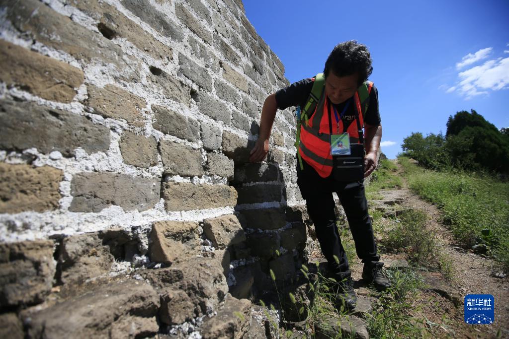 8月29日,俞海文在長(cháng)城上檢查長(cháng)城墻體。