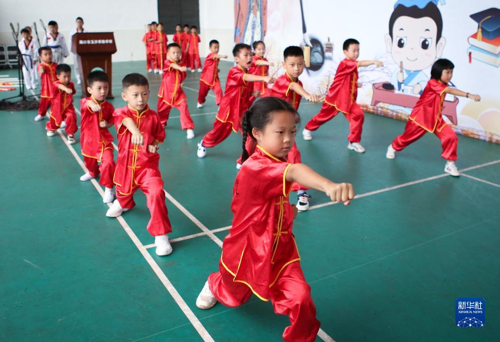 8月30日,??谑杏裆硨?shí)驗學(xué)校的武術(shù)隊在“開(kāi)筆禮”儀式活動(dòng)現場(chǎng)表演。