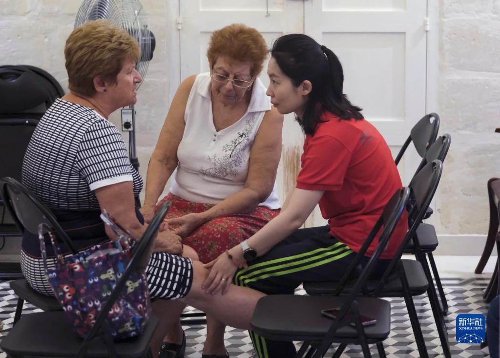 8月28日,在馬耳他榟橔市,中國援馬耳他醫療隊隊員史欣瑩為兩名婦女提供義診服務(wù)。