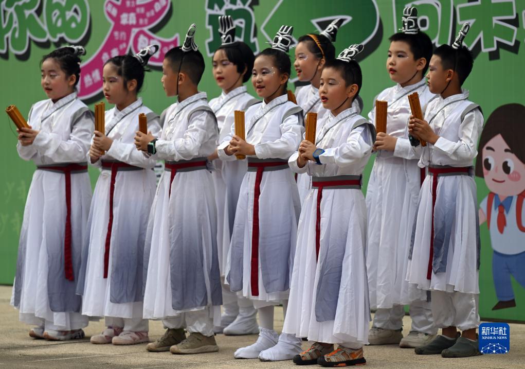 8月30日,在安徽省合肥市屯溪路小學(xué),學(xué)生表演誦讀《千字文》,體驗傳統文化,迎接新學(xué)期。
