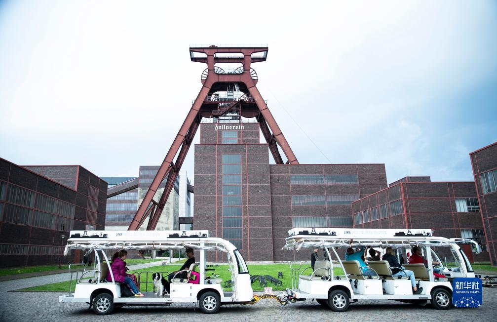 8月16日,人們乘坐電瓶車(chē)游覽位于德國埃森的關(guān)稅同盟煤礦工業(yè)區。