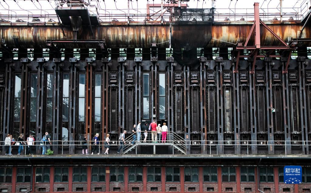 8月16日,在德國埃森的關(guān)稅同盟煤礦工業(yè)區,人們在導游帶領(lǐng)下參觀(guān)焦化廠(chǎng)內部。