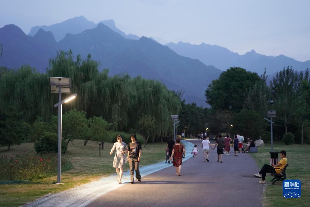 市民在位于西安市長(cháng)安區的秦嶺和諧森林公園內散步(8月16日攝)。