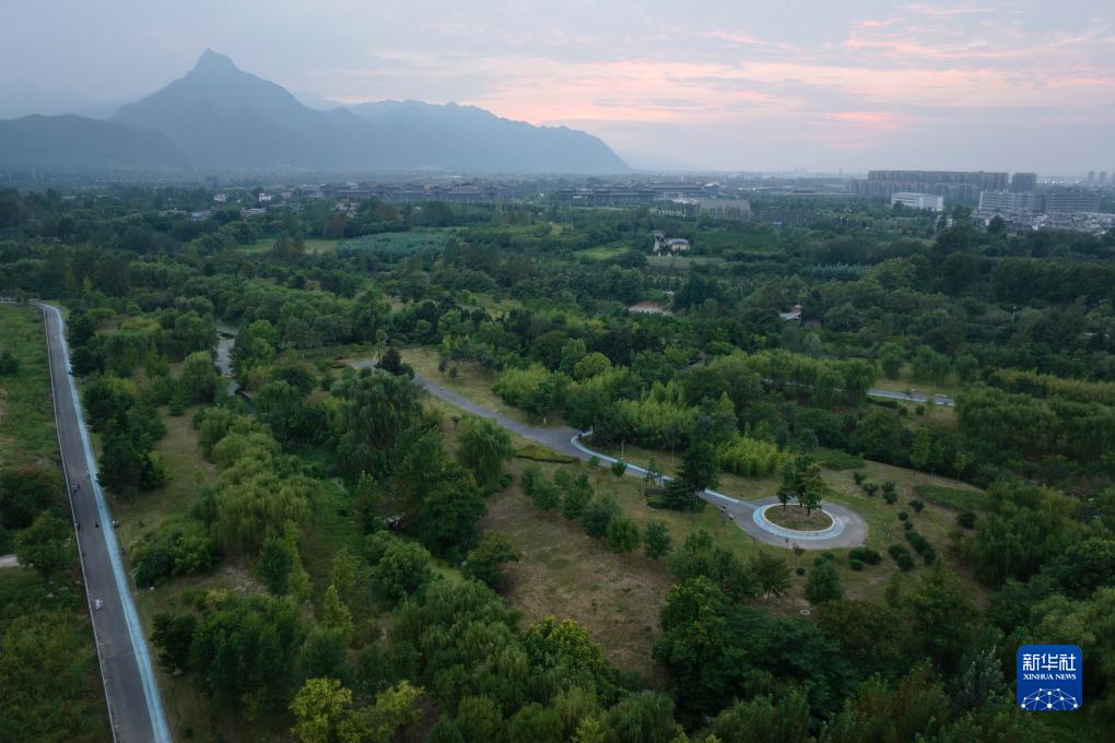 位于西安市長(cháng)安區秦嶺北麓的秦嶺和諧森林公園(8月16日攝,無(wú)人機照片)。