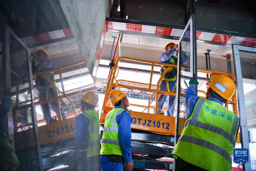 8月30日,在河套深港科技創(chuàng )新合作區首批重點(diǎn)項目河套壹號(原名:深港科創(chuàng )綜合服務(wù)中心)建設現場(chǎng),中建深裝的工人進(jìn)行門(mén)窗安裝作業(yè)。