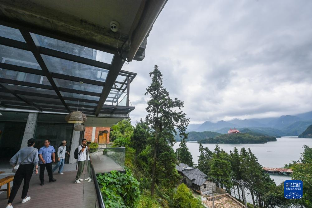 8月30日,游客在緊水灘鎮龍門(mén)村的聽(tīng)舟木屋民宿觀(guān)看風(fēng)景。該村通過(guò)打造村落景區,引入高端民宿等提升鄉村旅游的發(fā)展水平。