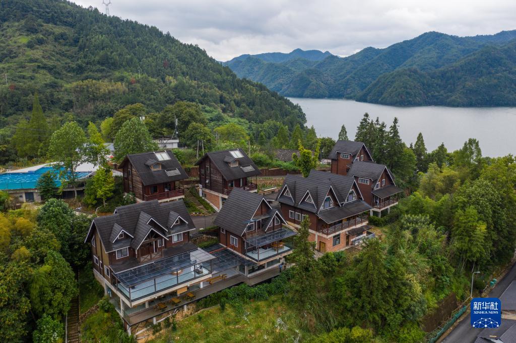 8月30日拍攝的緊水灘鎮龍門(mén)村的一家民宿(無(wú)人機照片)。該村通過(guò)打造村落景區,引入高端民宿等提升鄉村旅游的發(fā)展水平。