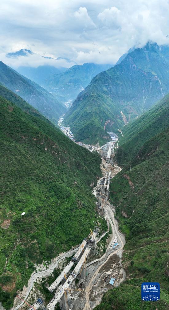 8月30日拍攝的位于金陽(yáng)縣境內蘆稿林河下游的蜀道集團沿江高速JN1(金寧一)標段項目部鋼筋加工場(chǎng)民工駐地板房(右下)已被山洪沖毀(無(wú)人機照片)。